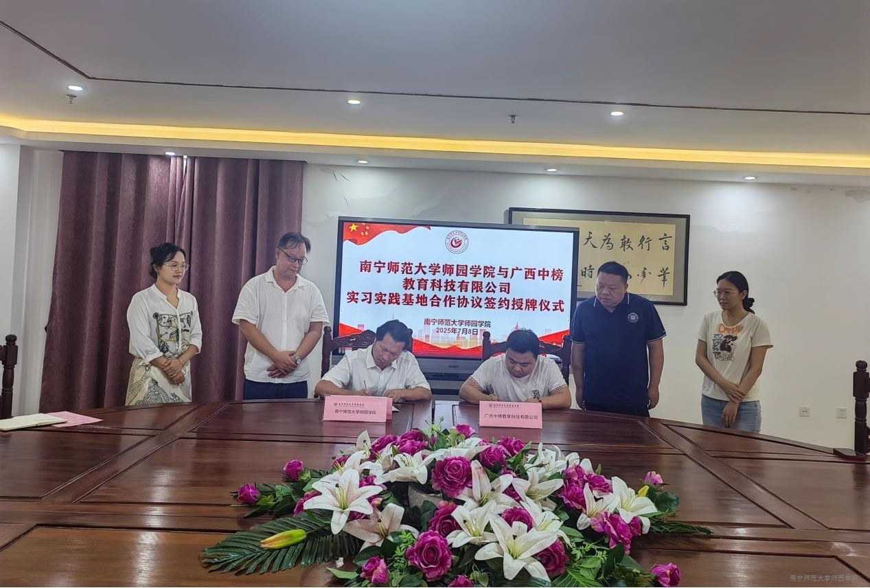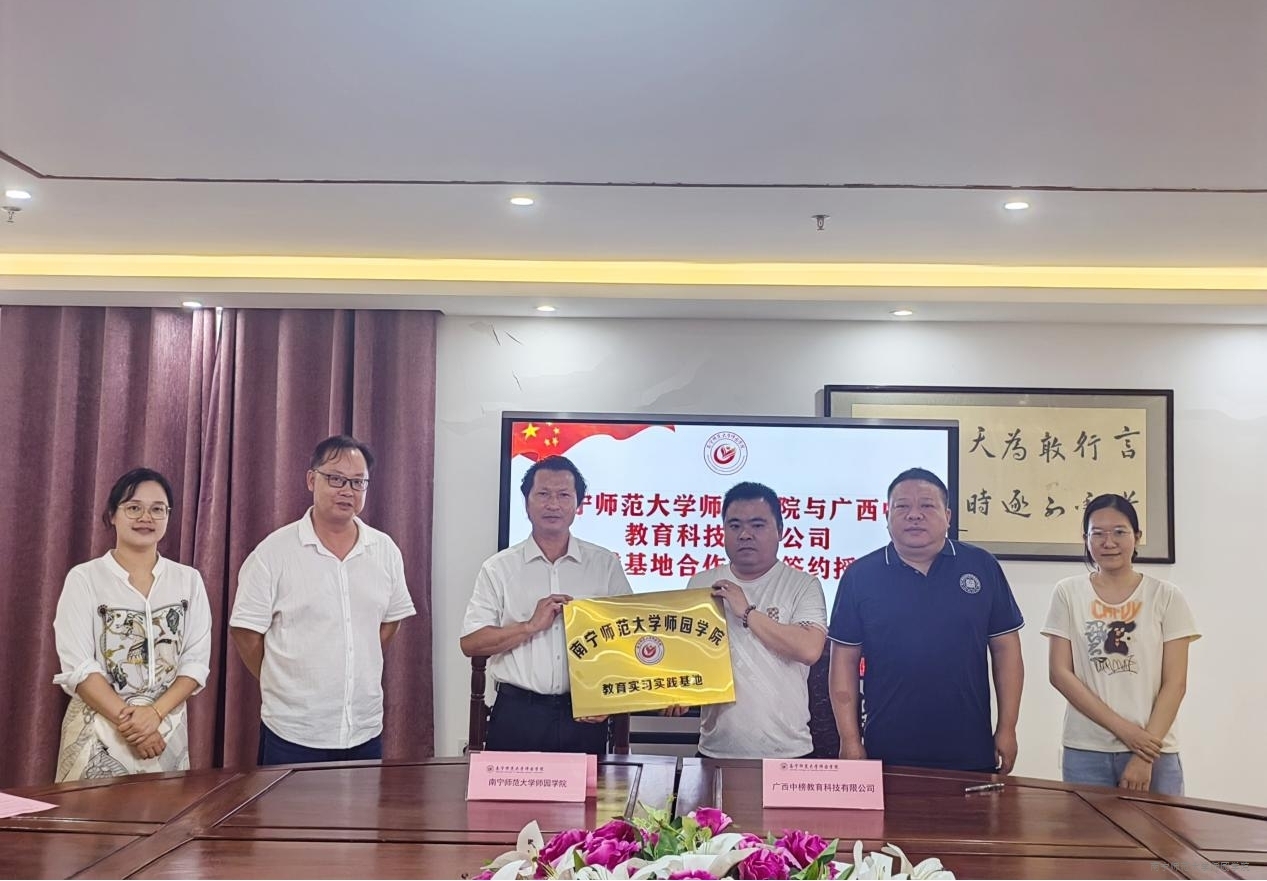 7月8日上午,学院与广西中榜教育科技有限公司在综合楼1002会议室举行实习实践基地合作协议签约仪式。学院副院长李德正,中文系主任、党总支书记、辅导员与广西中榜教育科技有限公司副总经理刘宇萌、南山校区负责人李练共同参加此次活动。