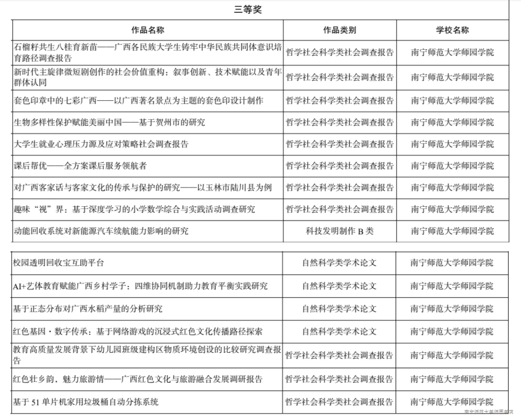 下一步,学校将以此次获奖为契机,进一步强化课外学术科技实践育人成效,聚焦国家战略需求与产业升级、社会痛点,深化创新人才培养机制,鼓励更多学子投身科技创新与社会调研,力争在后续赛事中再创佳绩,为服务科教兴桂战略、助力中国式现代化建设贡献更多青春力量。