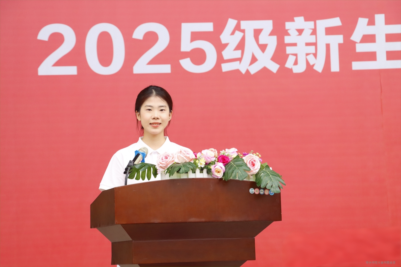 中文系2025级汉本2班的郑靖茹作为参训学生代表发言,向全体参训同学倡议:要铸牢集体意识,融入团队,展现青春风貌;锤炼顽强意志,在军训中吃苦拼搏,锻造强健体魄;恪守令行禁止,以“一切行动听指挥”彰显纪律意识。