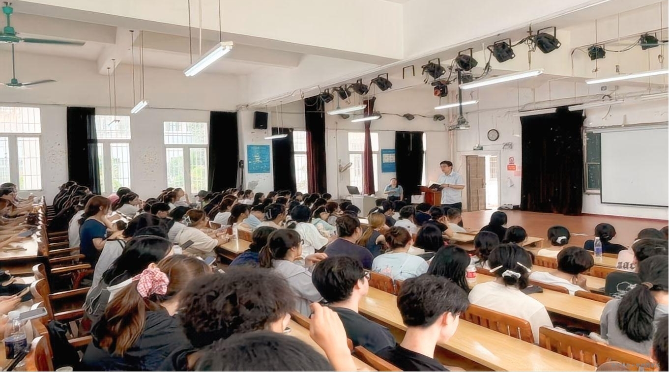 紧接着,美术与艺术设计教研室主任余斯婷介绍了美术学、环境设计、视觉传达设计等专业的学科特点,并结合自身教学经验和实践经验,与新生们分享了“如何成为一名优秀的艺术学习者”。她强调,艺术工作者要坚持以人民为中心的创作导向,通过生动案例阐释了艺术创作者应具备的敏锐观察力、独立思考能力与持续探索精神,并鼓励新生在艺术道路上坚守社会责任,弘扬正能量,保持对生活的敏感与好奇,在勤学苦练中提升专业素养,在时代浪潮中实现艺术理想。