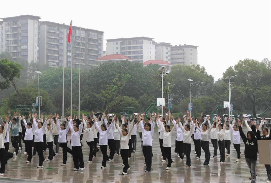 本次比赛分为甲组、乙组进行竞赛,比赛严格按照第九套广播体操图解说明进行评分。46支来自各教学单位的参赛队伍身着统一服装,精神抖擞、排列整齐,按照抽签排定的顺序依次入场比赛。比赛现场,同学们意气风发。每一次伸臂与踢腿刚劲利落,每一个转体与弯腰流畅自然。他们动作精准,步伐矫健,以整齐划一的节奏和默契十足的配合,完美诠释了团队的凝聚力与青春的昂扬风采。