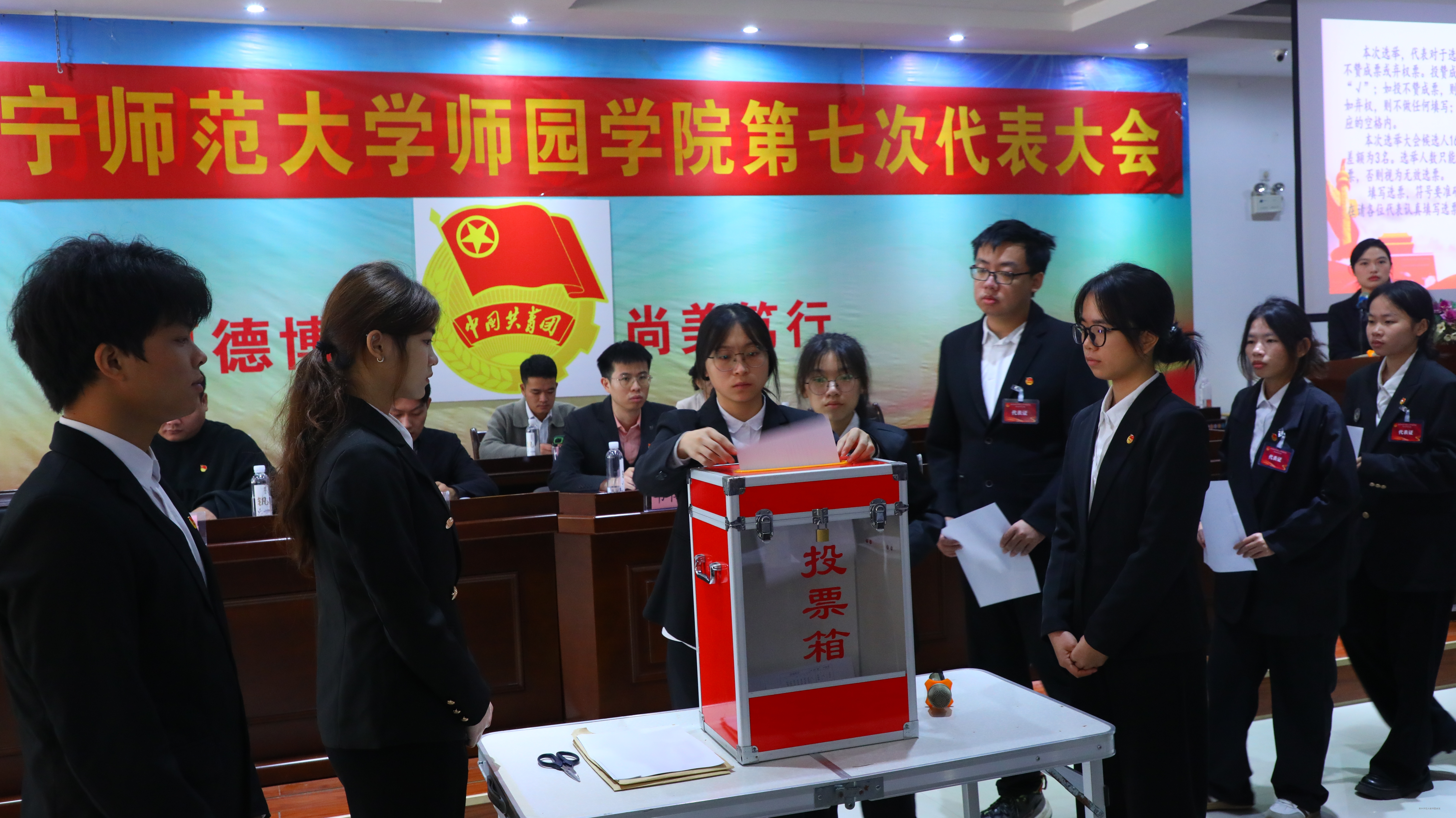 为深入学习贯彻党的二十届四中全会精神及团的十九大精神,进一步夯实我校共青团组织建设,11月22日上午,共青团86体育直播第七次代表大会在学校图书馆六楼第一报告厅召开。学校党委副书记梁秋(主持党委工作),党委副书记、常务副校长李剑喜,86体育直播团委书记李静出席大会,广西演艺职业学院团委负责人,学校党委学生工作部、校团委负责人,各团总支书记及全校团员代表近200名师生共同参加大会。
