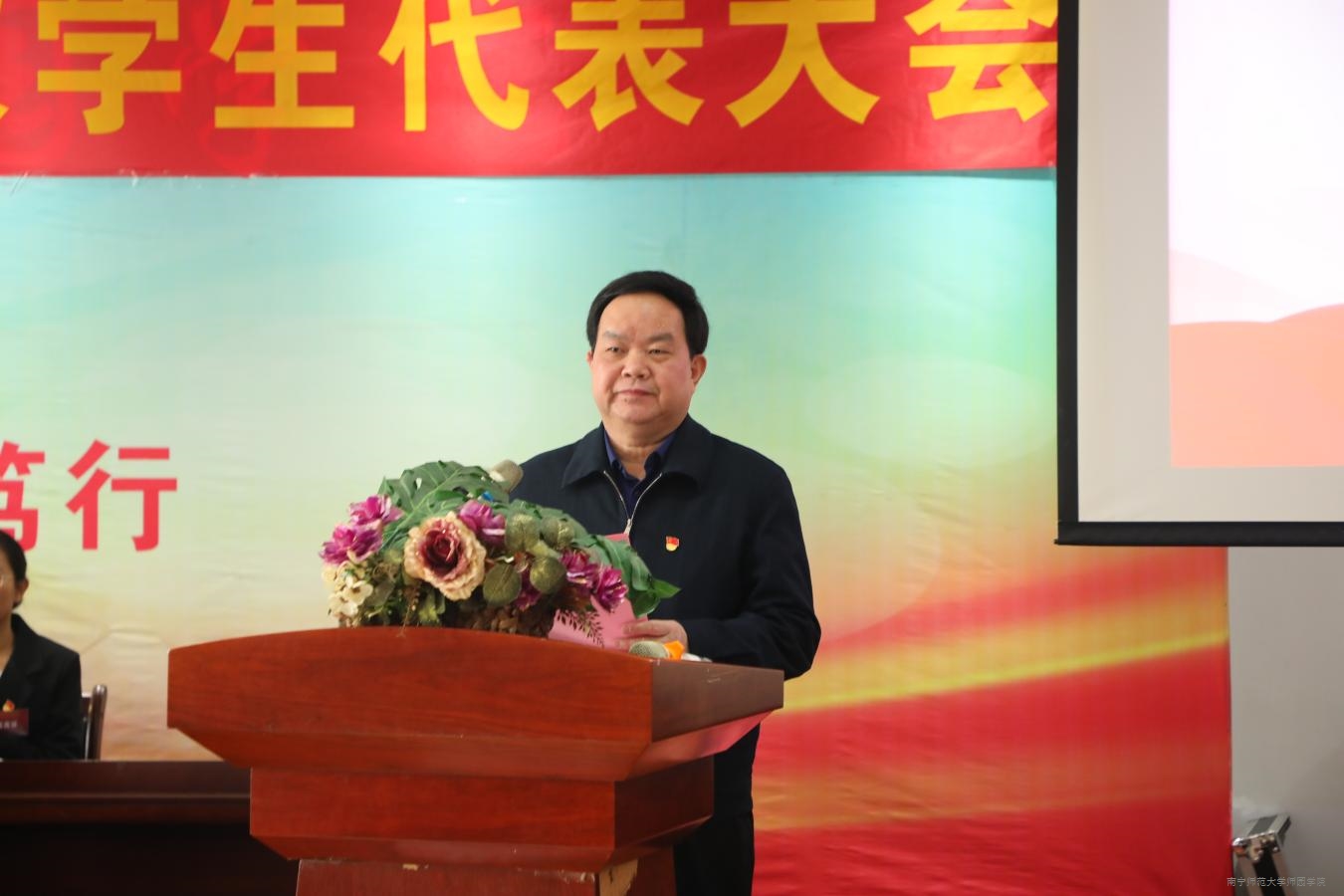 学校党委副书记、常务副校长李剑喜在大会上发表讲话。他指出,我校学生会始终秉承“全心全意为同学服务”的根本宗旨,以高度的责任感和使命感,搭建起了学校与同学之间的“连心桥”。同时,他对我校全体青年学子提出三点希望:一是要坚定理想信念,以小我融入大我,锚定正确的人生航向,做“有信仰”的新时代青年;二是要锤炼过硬本领,夯实专业基础、勇于实践创新,做“有本领”的新时代青年;三是要勇于担当作为,全体学生代表要牢记自身职责与使命,主动倾听同学心声,及时反映学生诉求,积极为学校发展建言献策,做“有担当”的新时代青年。