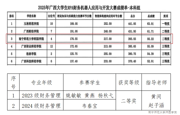 近日,2025年广西大学生RPA财务机器人应用与开发大赛组委会正式揭晓获奖名单。我校学子凭借扎实的专业功底和卓越的创新能力,攻坚克难,最终斩获二等奖1项。