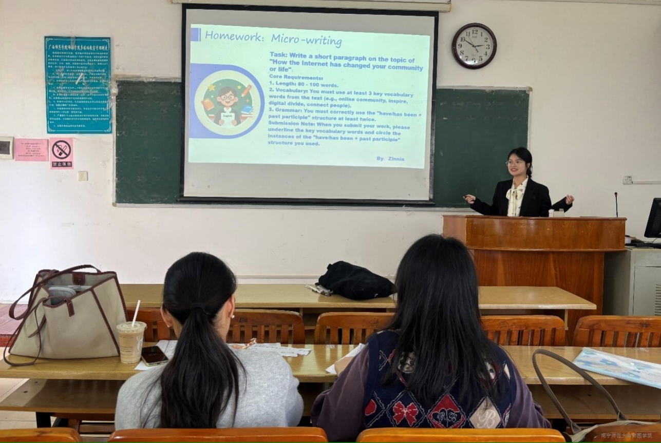 12月10日下午,外语系顺利举办师范生教学技能大赛。此次大赛以“锤炼教学基本功,赋能教育新未来”为主题,大赛分为初中组和高中组,共有14名优秀学子同台竞技,展现了新时代师范生的专业素养与育人风采。