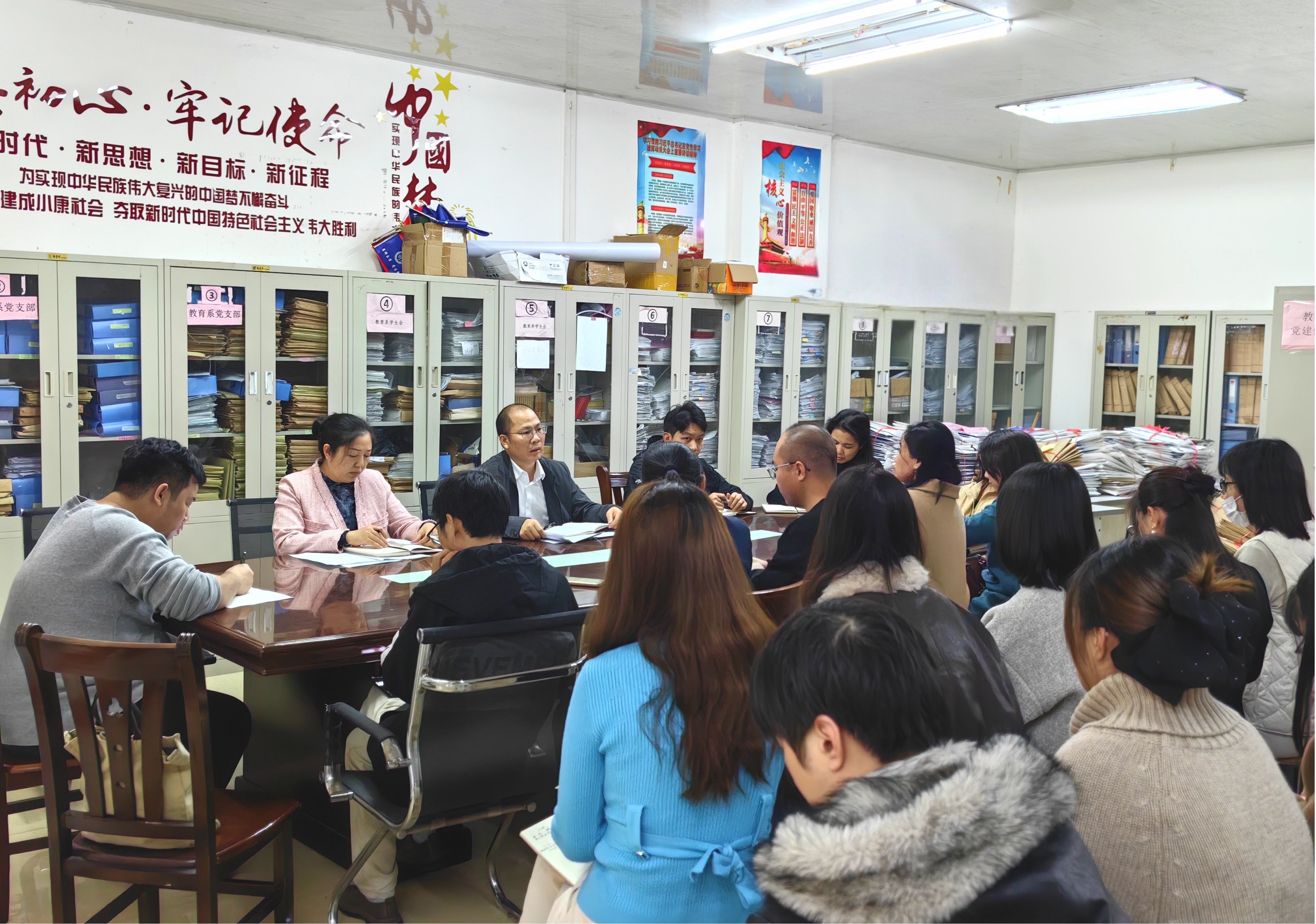 12月18日,教育系召开期末工作综合部署会议,系统总结前期教学工作,全面部署期末阶段各项任务。教育系全系教师参加会议。