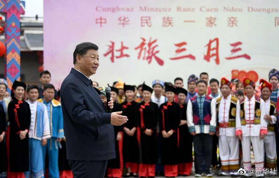 27日上午,正在广西南宁考察调研的习近平总书记,来到广西民族博物馆,参观壮族文化展,观看三月三“歌圩节”壮族对歌等民族文化活动展示,了解促进民族团结进步和民族文化保护传承等情况。(文字记者:张晓松、朱基钗;摄影记者:鞠鹏、谢环驰、申宏)