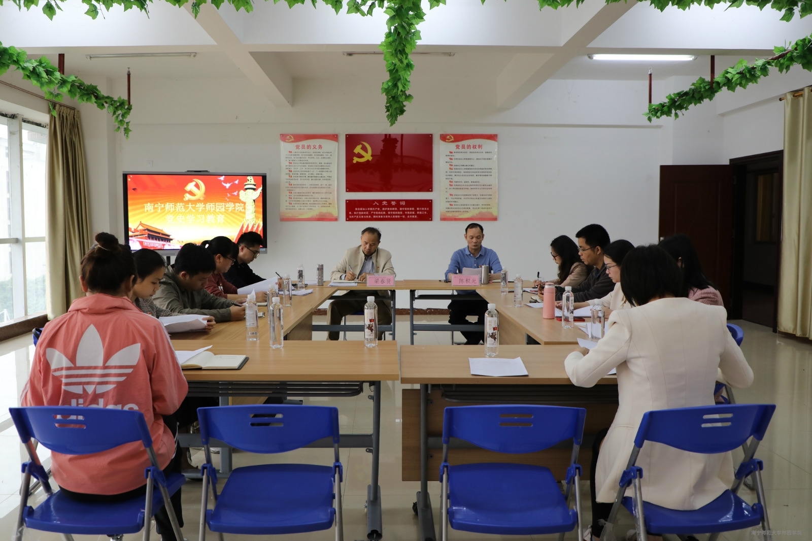 为了扎实学院党史学习教育工作,提高学习效果,4月27日下午,我院在行政综合楼4楼党员活动室召开党史学习教育第工作推进会。学院党委书记梁春贤,副院长陈积光,各系党总支书记及党委系统各部门负责人参加会议。