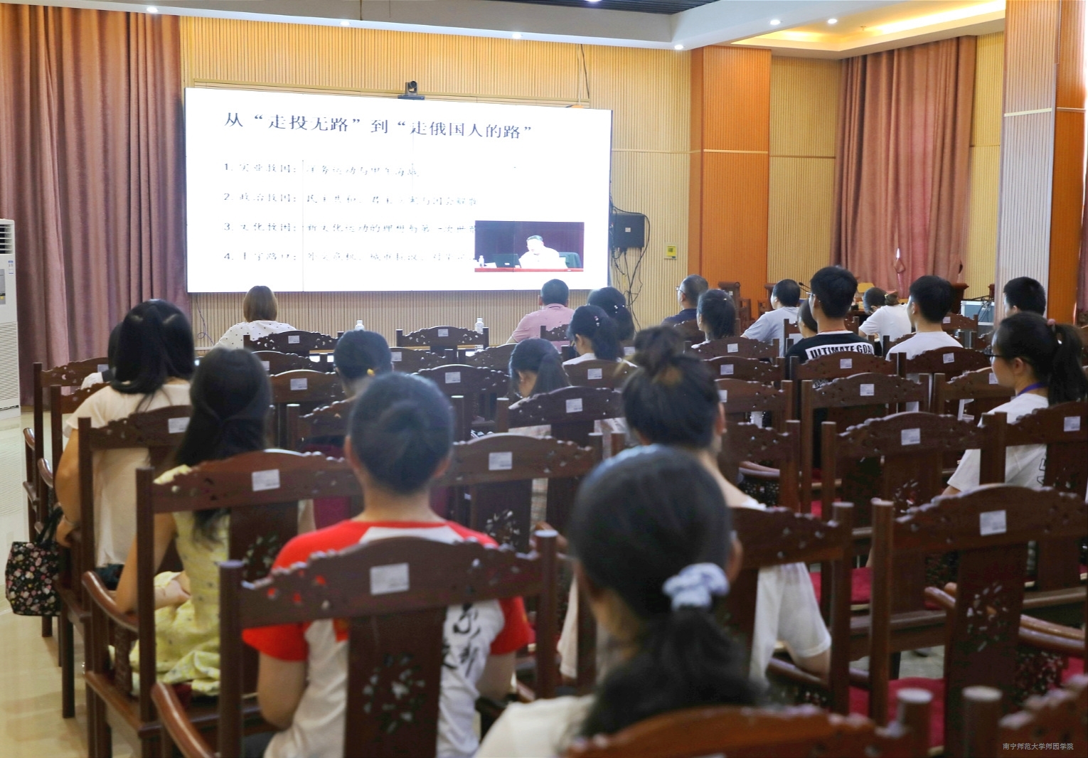“中国共产党是中国工人阶级的先锋队,是中国人民和中华民族的先锋队”。杨德山教授在课上,以中国共产党百年历史为主线,从旧中国的政治、经济、社会、文化和国内外形势等不同角度,探讨中国共产党产生的历史渊源,论述中国共产党为中华民族作出的伟大历史贡献。同时,他还从“中国共产党为什么会选择毛泽东”的独特历史视角,深刻阐述了历史和人民最终选择中国共产党背后所蕴含的历史逻辑、理论逻辑和实践逻辑。杨德山教授表示,历史实践表明,坚持中国共产党的领导是近代以来中国历史发展的必然选择,是中国人民的理性选择。