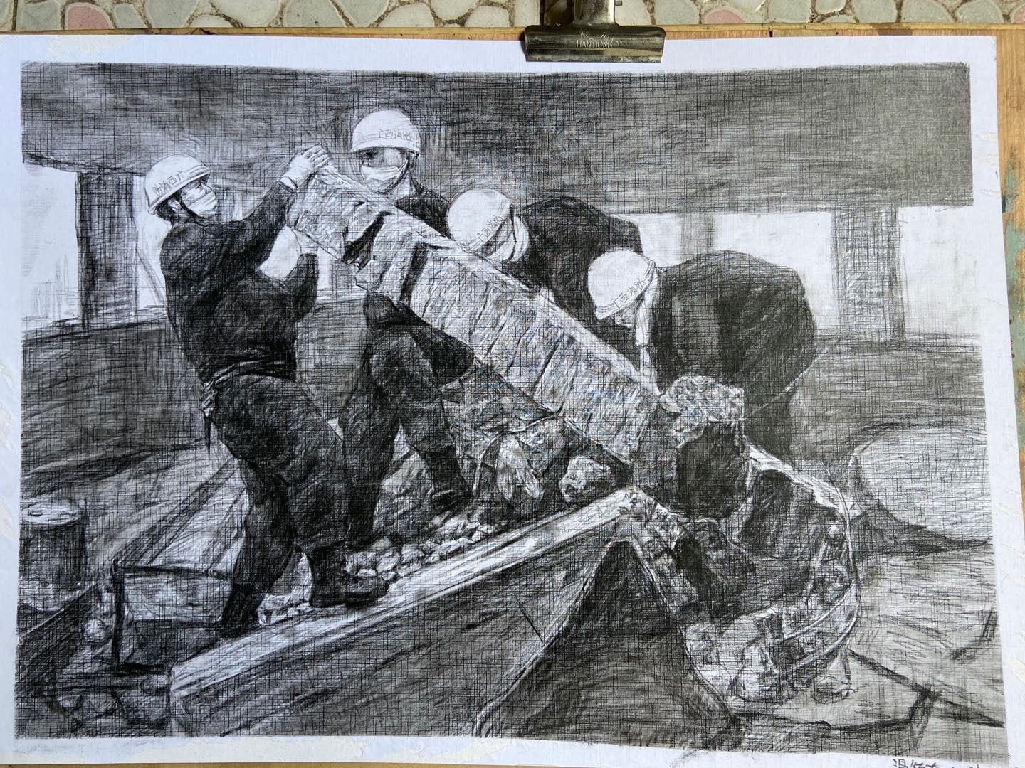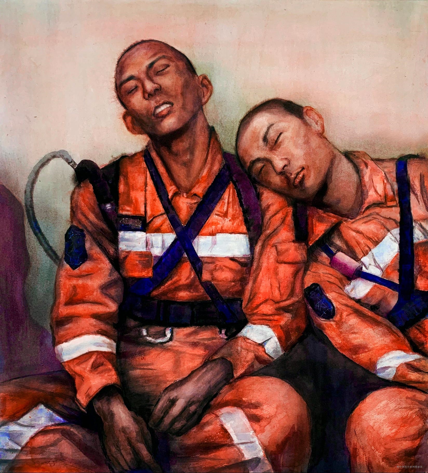 作品题目:《搜救》作者:温德友(艺术系2019级美术学专业油画方向)