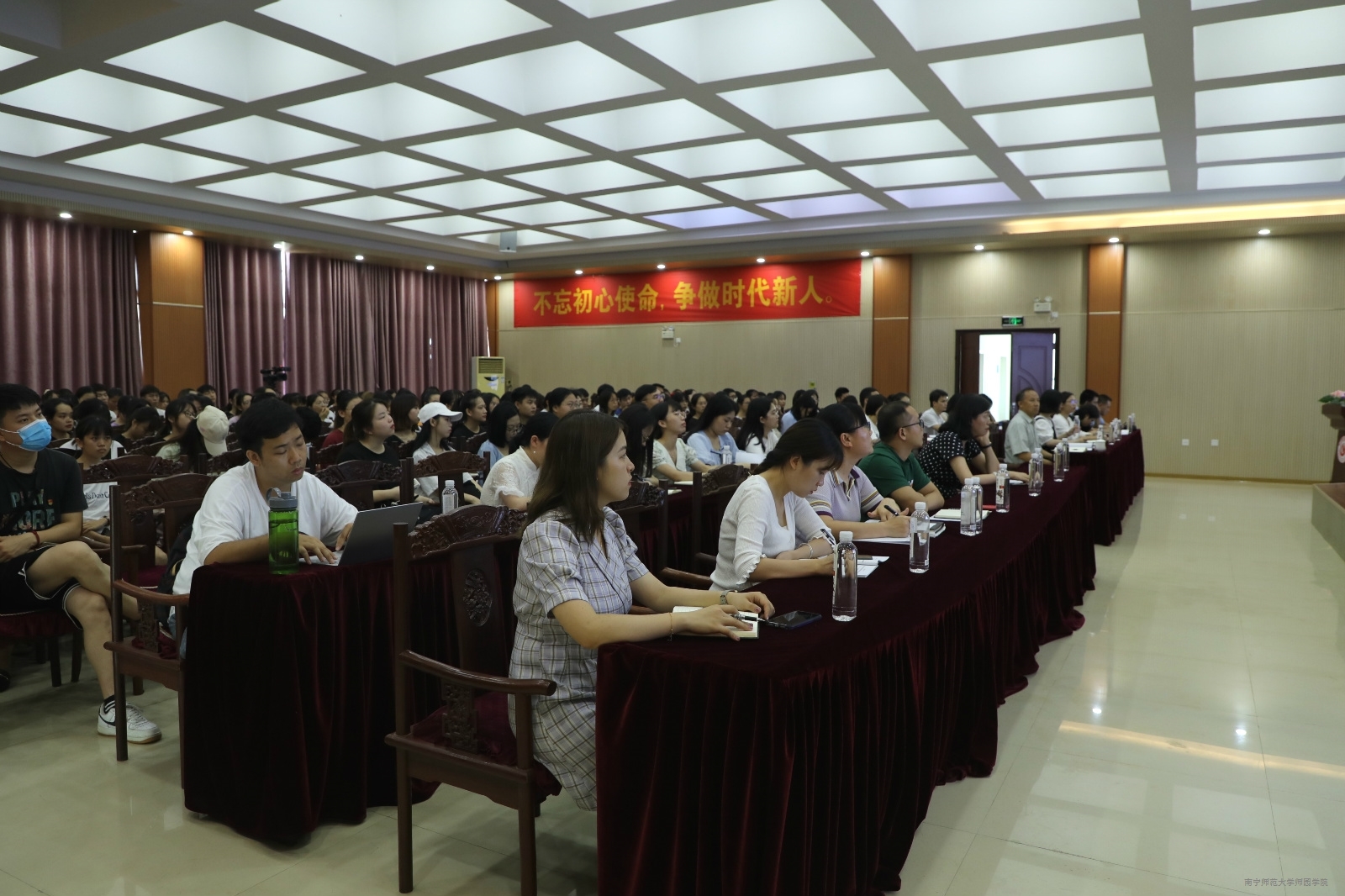 林怀勇常务副部长还领学了习近平总书记近年来对青年一代发表的重要讲话精神,指出了当代青年的担当和使命。对我院学生提出了四点希望。一要坚定理想信念,坚持以习近平新时代中国特色社会主义思想武装头脑,把理想信念建立在对科学理论的理性认同中,建立在对历史规律的正确认识上,建立在对基本国情的准确把握上,不断增强道路自信、理论自信、制度自信和文化自信;二要珍惜学习时光,掌握学习方法,练就过硬的本领;三要勇于创新创造,把握创新前沿,大胆创造,开拓创新;四要建立正确的人生观,增强自信心,以积极进取的心态迎接新时代中国特色社会主义建设的新挑战。
