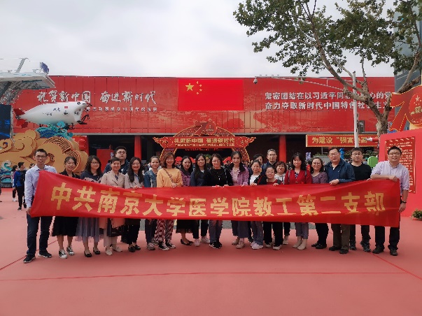 为了让支部成员从建国以来江苏省取得的伟大成就中体悟中国特色社会主义新时代的浪潮,同时增进支部成员的“四个自信”意识,加强对“五位一体”总体布局的认识。南京大学医学院教工第二党支部、本科生第一党支部党支部组织全体支部成员观看了“礼赞新中国 奋进新时代——江苏省庆祝中华人民共和国成立70周年成就展”。