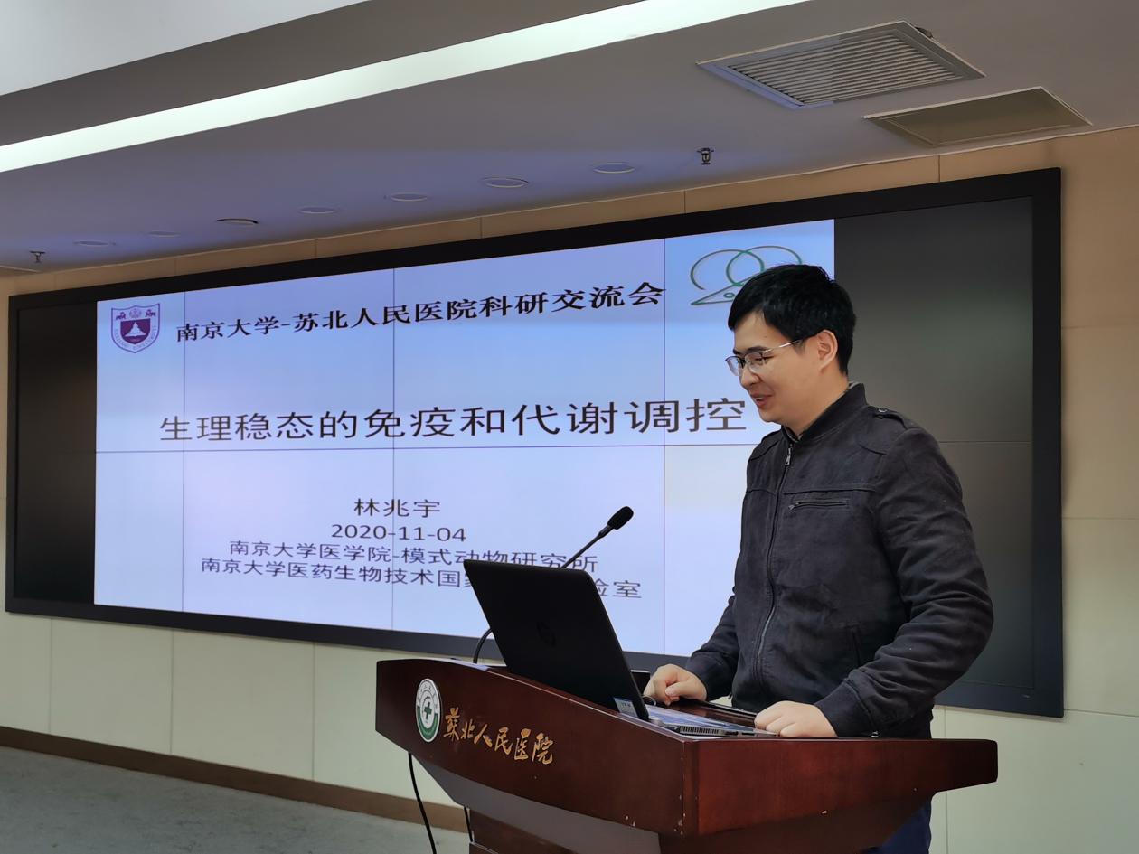 随着南京大学医学院附属苏北人民医院正式揭牌,南京大学医学院与苏北人民医院以此为契机签署战略合作协议,在多方面开展深度合作与交流。以共建南京大学医学院附属苏北人民医院为目的,充分发挥南京大学的教学科研优势,培养高水平的医疗、教学人才,2020年11月4日,南京大学医学院-附属苏北人民医院科研交流会顺利在扬州举行。医学院基础部11位教授、模式动物研究所11位PI与附属苏北人民医院的各科室主任及科研人员共同出席会议,介绍团队科研概况与整体发展,推进双方学术沟通与交流合作。