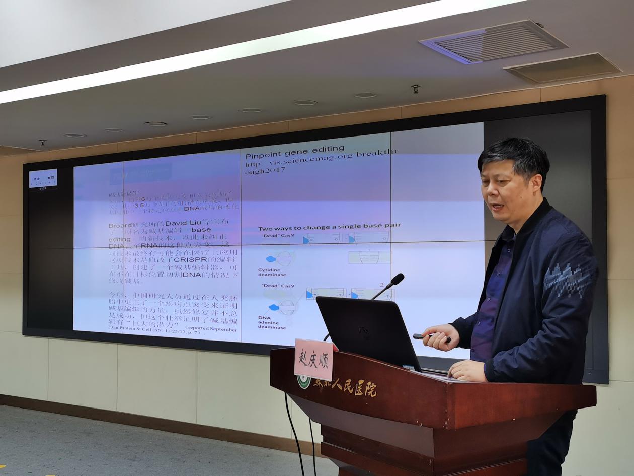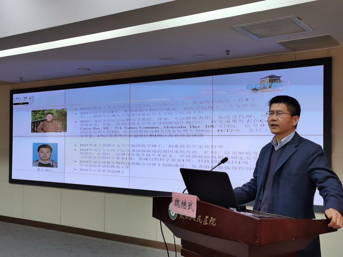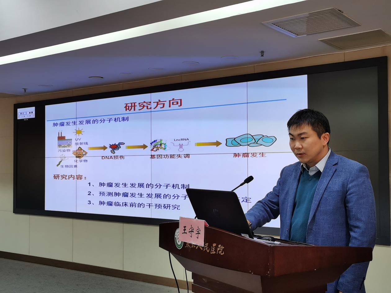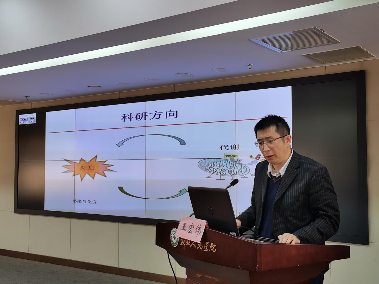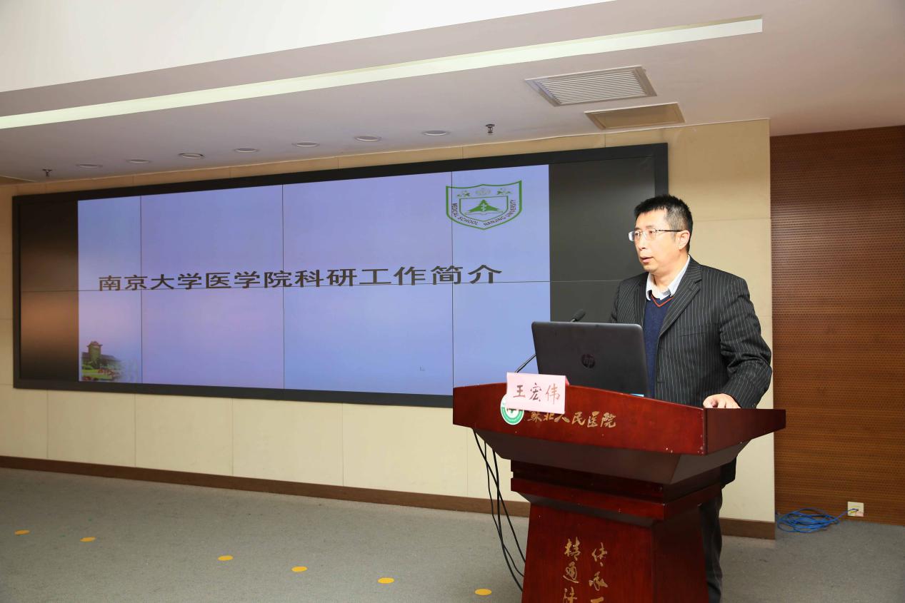 南京大学医学院副院长王宏伟教授介绍了南京大学医学院科研发展情况,希望通过科研交流会,创造更多的合作机会,促进医学院基础学科和我院的紧密结合;通过开展科研结对活动,发挥彼此的资源优势,借助南京大学的学科优势、平台优势以及我院的临床资源优势,通过顶层设计和科学谋划,有针对性地开展转化医学研究;希望能够进一步加强人才培养的力度,打造一流的青年科研人才队伍。