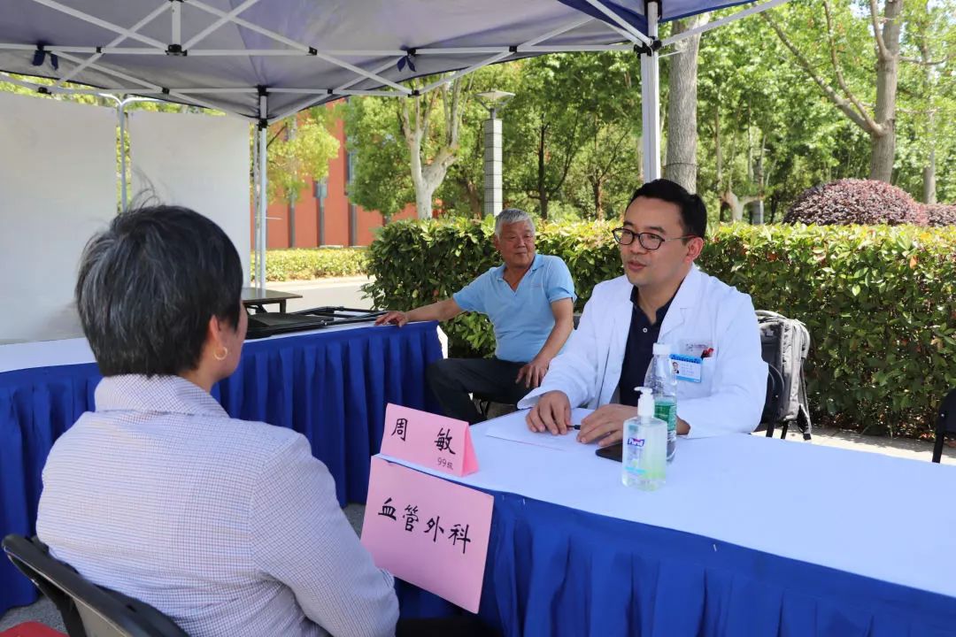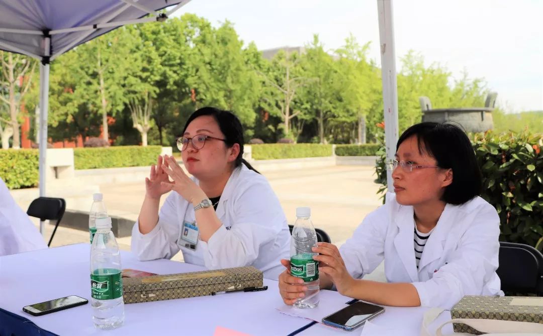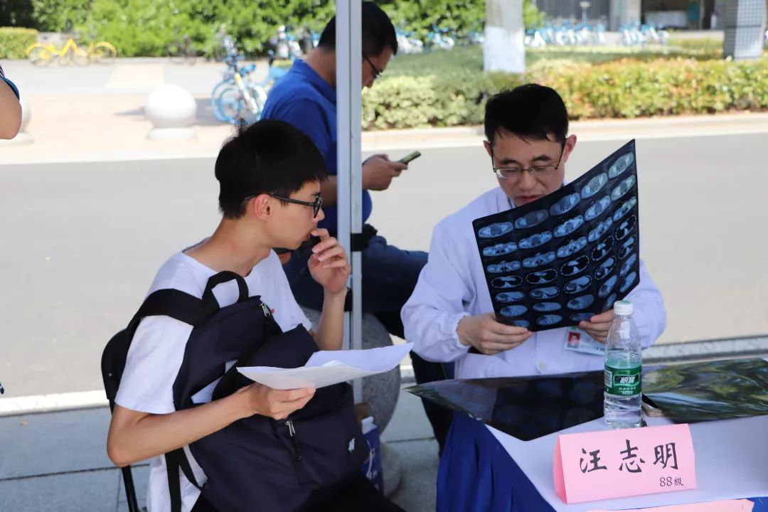 义诊期间气温最高达34摄氏度,室外可谓是个‘大火炉’,但活动现场热度不减,众多在校师生、退休老教师以及周边社区的居民前来咨询,义诊校友们仔细询问病史、查看检查报告、为师生们做检查,耐心地讲解疾病防治和健康生活注意事项。