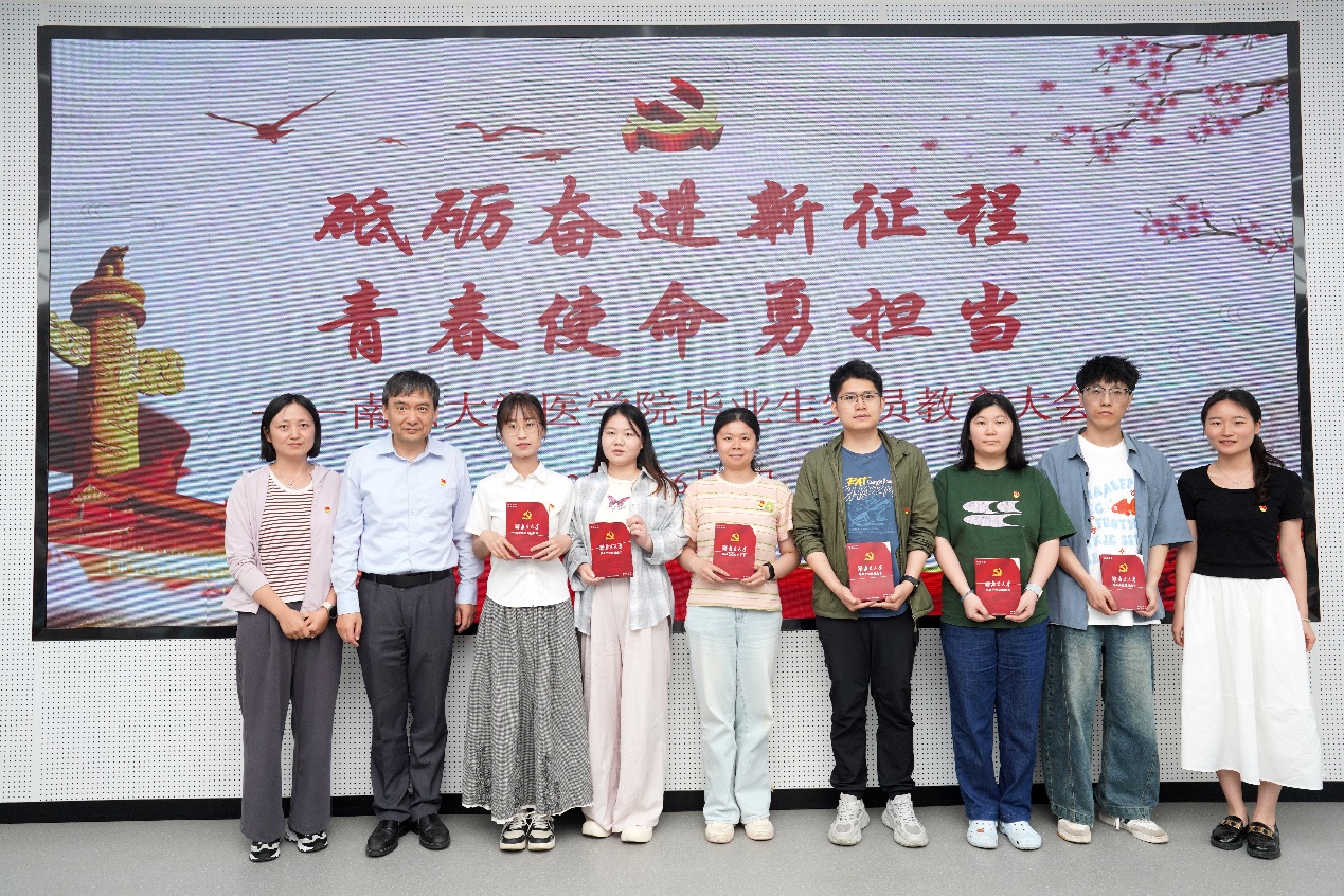 为全面贯彻落实党的二十大精神,深入开展学习贯彻习近平新时代中国特色社会主义思想,贯彻落实南京大学“奋进行动”方案,积极建设“第一个南大”,教育引导毕业生以南大人特有的社会责任感和使命感投身今后的工作和学习。6月9日,医学院党委召开“砥砺奋进新征程、青春使命勇担当”毕业生党员教育大会。医学院党委书记沈苏南、党委副书记王阿妮、辅导员老师以及2025届全体毕业生党员参加了此次会议,会议由王阿妮主持。