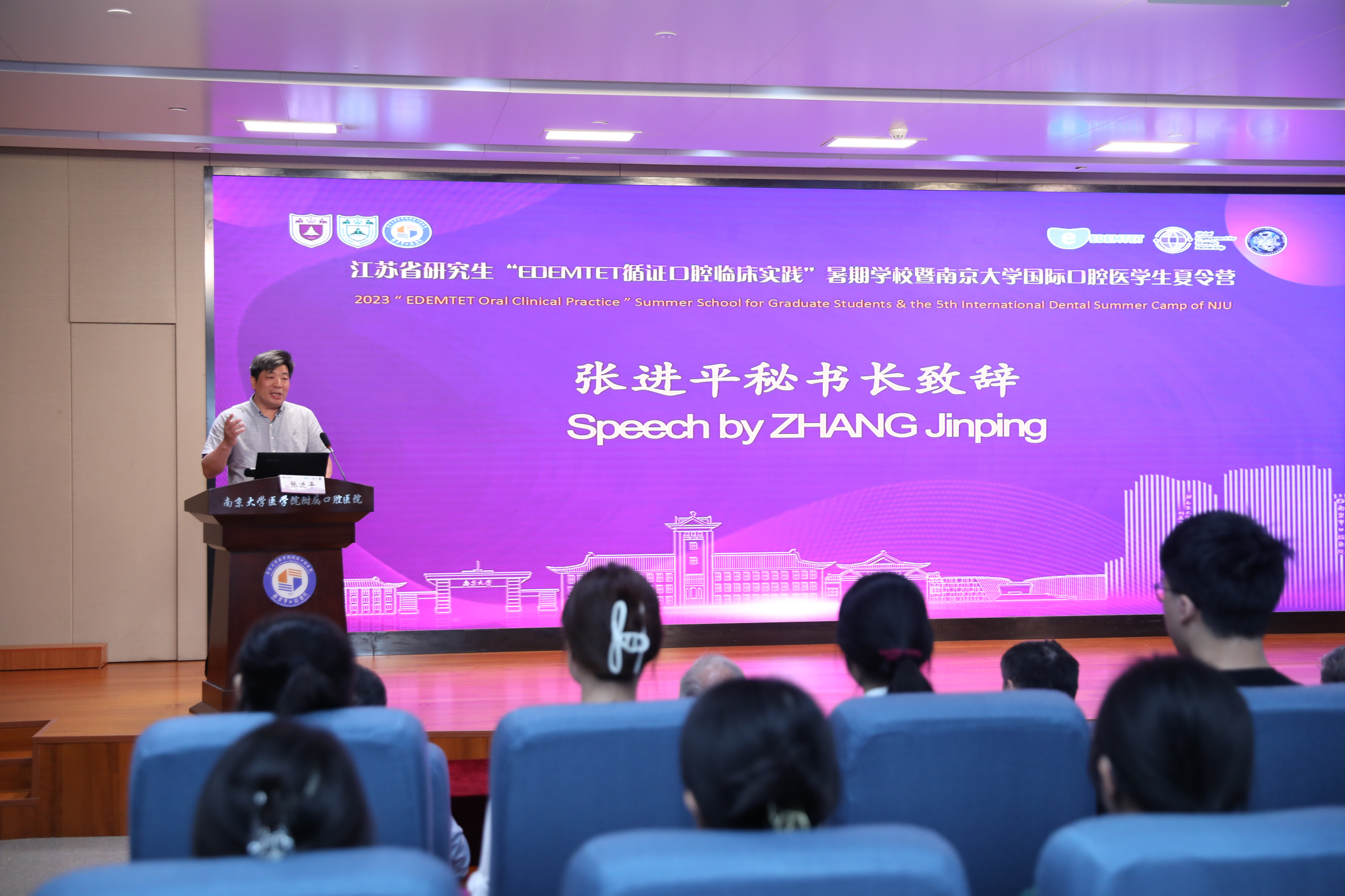 7月16日上午, 江苏省研究生“EDEMTET 循证口腔创新实践”暑期学校暨南京大学第五届国际口腔医学生夏令营正式开幕。该项目是由江苏省医学类研究生教育指导委员会主办,南京大学医学院口腔医学院承办,同时得到了欧盟高等教育 Erasmus+项目和南京大学全球战略合作伙伴推进计划 GESP 项目的大力支持。