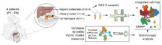 南京大学吕瑛等研究人员对4名经病理诊断为PDAC并伴有肝转移的患者的8个新鲜组织进行了单细胞转录组测序,并且对公共数据库进行了深入挖掘。