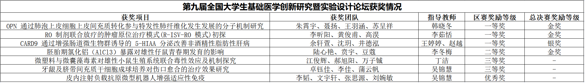 8月27日,由高等学校国家级实验教学示范中心联席会基础医学组主办的第九届全国大学生基础医学创新研究暨实验设计论坛在山城重庆圆满落幕。南京大学医学院在总决赛中获得金奖3项,银奖1项;在分区赛(东部赛区、口腔赛道)中获得一等奖3项、二等奖1项、三等奖2项、优秀奖1项的优异成绩。
