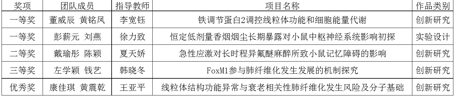 第六届全国大学生基础医学创新研究暨实验设计论坛获奖情况