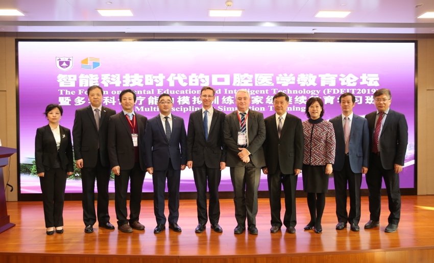11月10日上午,利兹大学牙医学院代表团出席了南京大学医学院附属口腔医院主办的“智能科技时代的口腔医学教育论坛”。我院韩晓冬书记、附属口腔医院胡勤刚院长致欢迎词。会上,Alan Mighell院长、David Wood 教授、杨学斌副教授详细讲解了英国利兹大学牙医学院研究生教育。现场反响热烈,观众收获颇多!