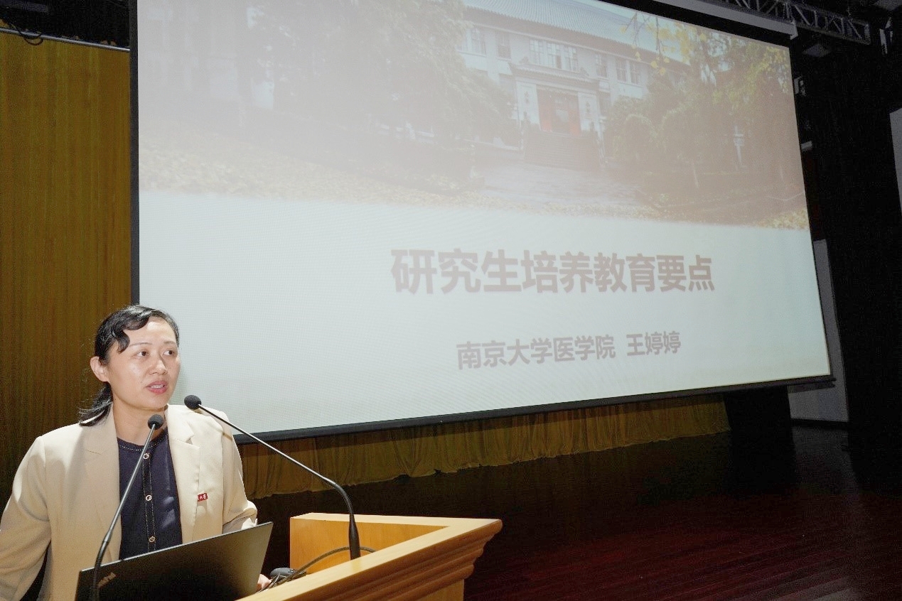 王婷婷副院长介绍了医学院研究生的培养方案、管理组织构架,并详细介绍了关于学位授予标准、注意事项、奖助学金等与培养相关切实的问题,希望同学们能够踏实努力,在南大收获精彩人生。
