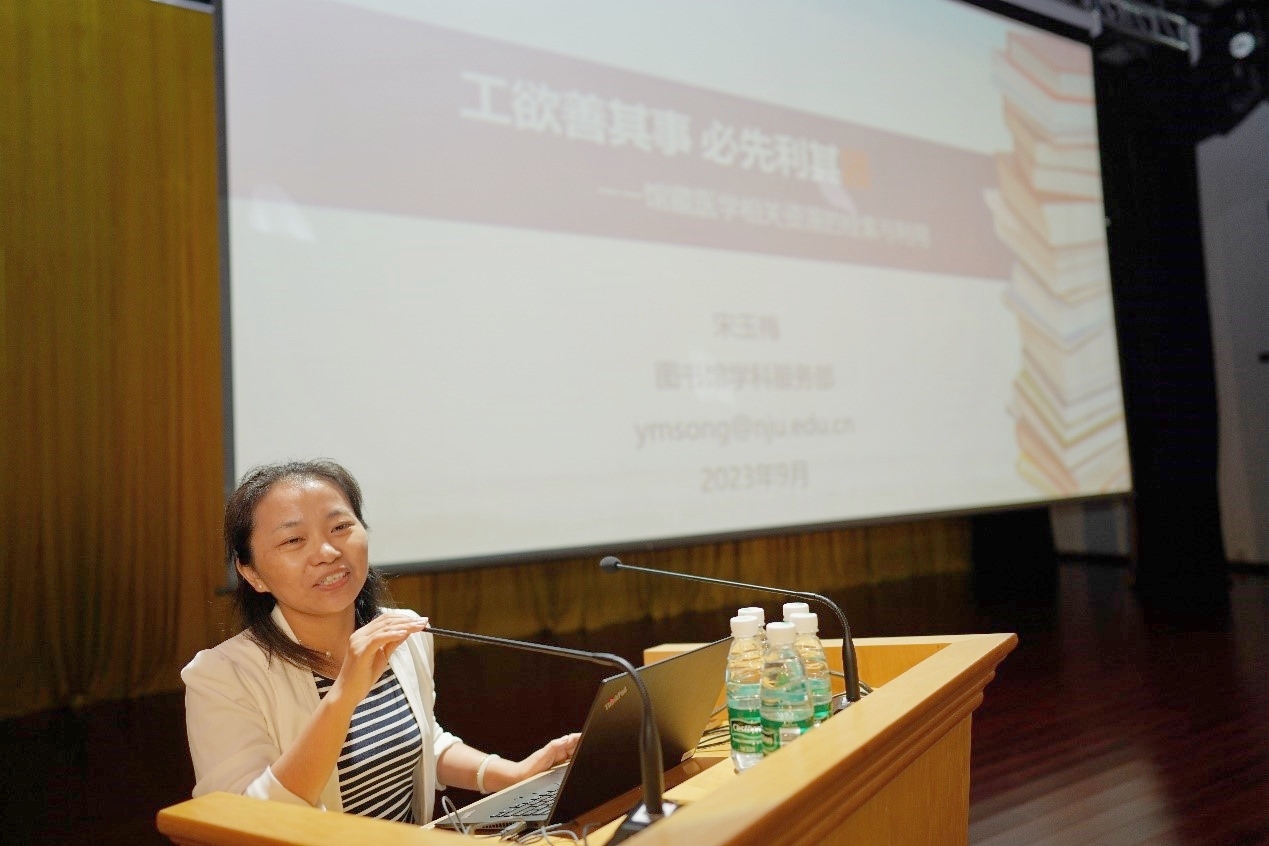 南京大学图书馆学科服务部主任宋玉梅从馆藏医学资源、医学相关数据库检索、良好科研习惯的养成、图书馆提供的相关服务四个方面出发,鼓励同学们不仅要成为会看病的医生,更需要利用好图书馆资源,努力推动医学学科的发展。