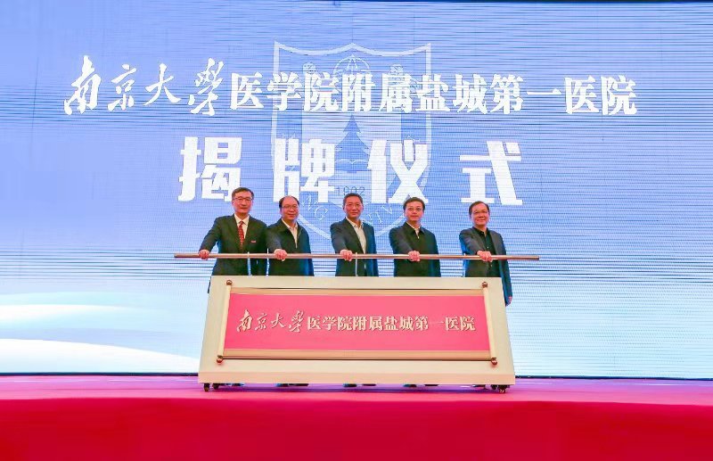 11月21日上午,南京大学医学院附属盐城第一医院揭牌仪式在盐城市东郊迎宾馆举行。南京大学党委常委、副校长、医学院院长张峻峰,南京大学党委常委、统战部部长、党委办公室主任王云骏,盐城市委书记戴源,市委副书记、市长曹路宝,江苏省教育厅副厅长王成斌,江苏省卫生健康委员会副巡视员祁爱平,盐城市副市长葛启发等出席活动。活动由盐城市人民政府秘书长郭玉生主持。