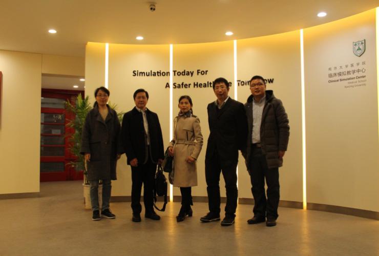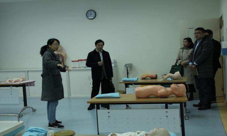 首先,王宏伟教授与袁阿虎副教授带领来访专家参观我院临床模拟教学中心,肖瑞老师对我院教学情况及学生训练情况进行介绍。