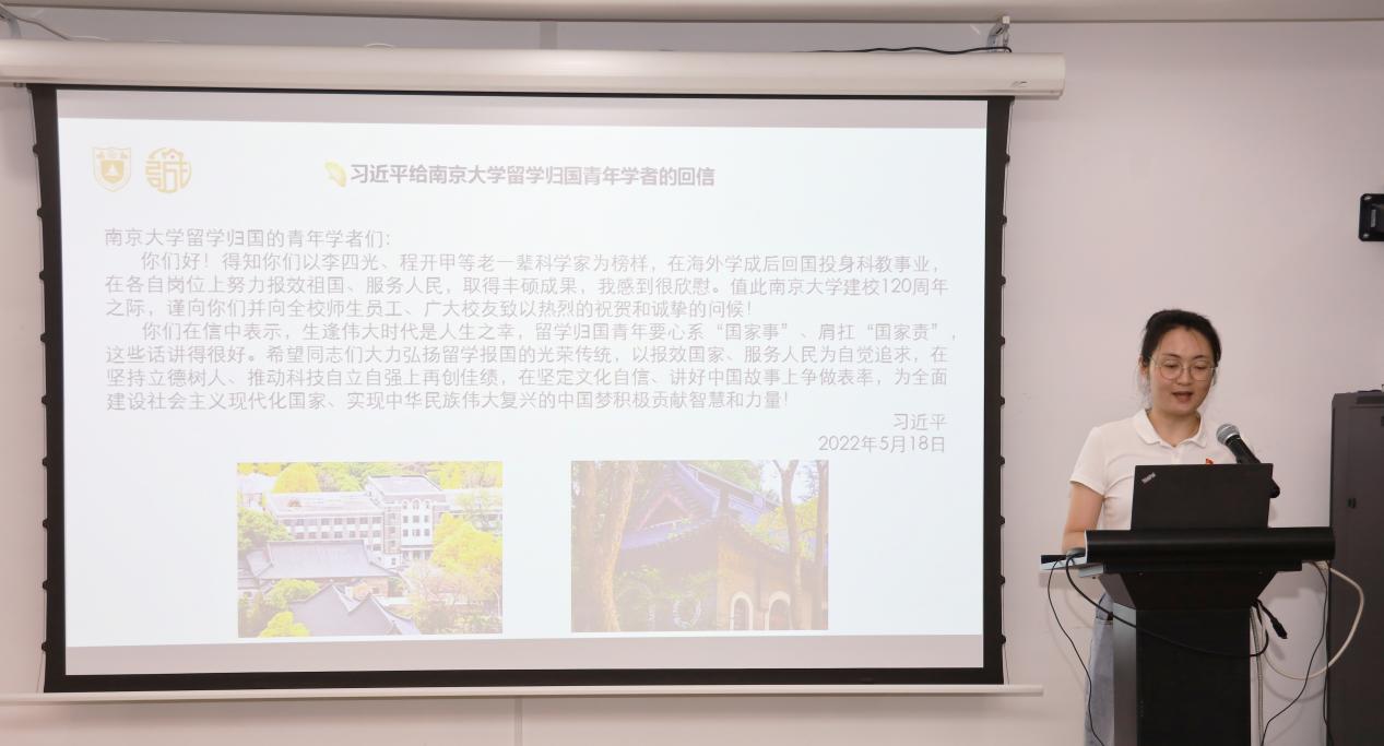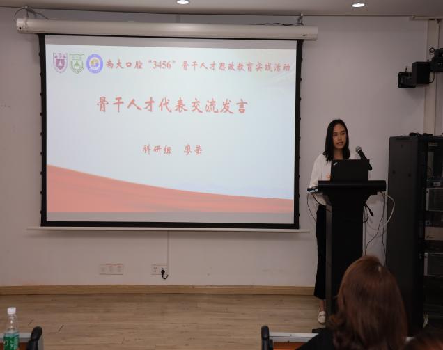 参观结束后,全体人员在医学院东南楼206会议室举行了本次思政教育实践活动的总结大会,会议由附属口腔医院党委委员、人事科科长王繁可同志主持。会上,附属口腔医院党办(新闻办)主任助理、团委书记魏敏同志领学了《习近平给南京大学留学归国青年学者的回信》。留学归国人员、江苏省“双创博士”、入选骨干科研人才的儿童口腔科医师廖莹同志,以及入选护理人才的儿童口腔科护士长戴丽同志分别作了交流发言。