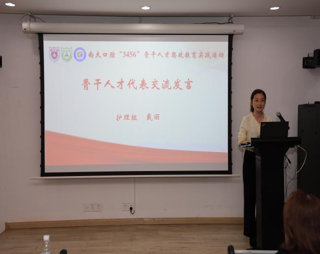附属口腔医院党委书记王磊同志在总结讲话中强调,骨干人才是经过医院层层严格选拔产生的,每一名同志都要做到自身政治强、情怀深、思维新、视野广、自律严、人格正。王磊书记对70名骨干人才中积极参加援沪、援苏的15名同志予以表扬,并对下一步工作提出三点要求,一是要有科学报国的志向,要深刻学习把握习近平总书记给南京大学留学归国青年学者回信重要精神,将个人理想与国家民族的命运紧密相连。二是要有人民至上的信念,要努力把自己培养成为一名敬畏生命、情系苍生的又红又专的医学人才。三是要有行稳致远的坚定,在今后的工作中要细心观察,大胆实践,以稳定的心态,不骄不躁的态度争取更好成绩。希望大家以此次思政教育实践活动为起点,努力提高政治素养和专业水平,充分利用好医院提供的成长平台、成才沃土,齐心协力开创医院高质量发展新局面。