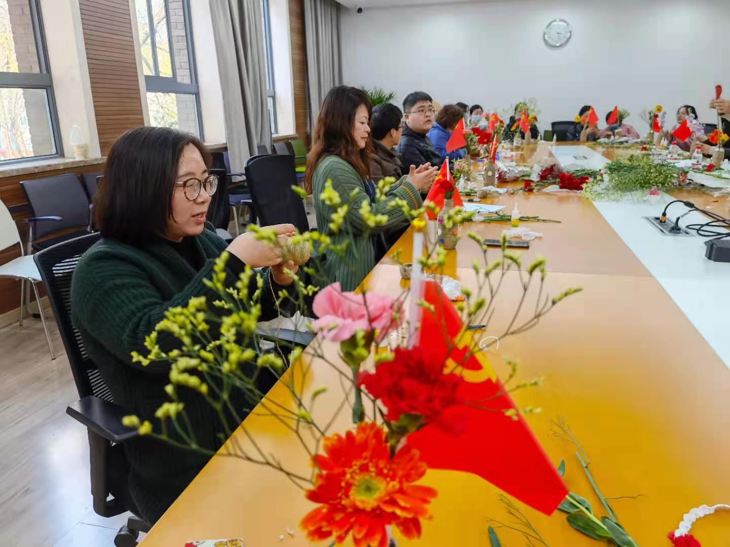 在党的百岁诞辰来临之际,3月24日下午,医学院教工第二党支部以学习党史为主题,以“插瓶鲜花贺党生”活动为载体,组织支部30多名党员、入党积极分子以及群众,用亲手设计的鲜花作品致敬党的光辉历程,祝福伟大的母亲生日快乐!