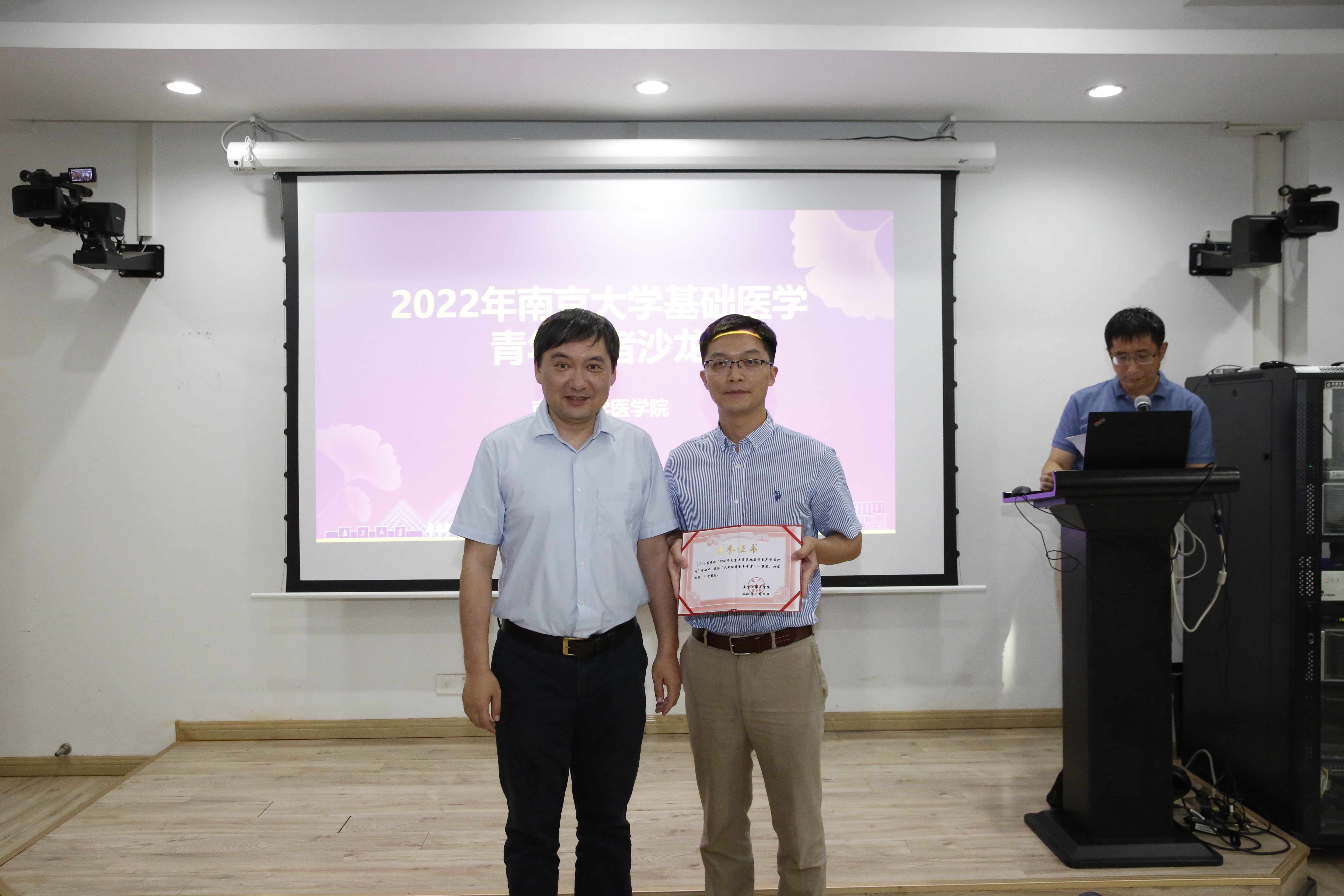 本次会议安排了优秀青年学者票选环节,通过学院老师的投票,吴喜林等9名老师分获“天能优秀青年学者”一二三等奖,南京大学医学院党委书记沈苏南教授、上海天能生命科学有限公司副总陈影女士、医学院杨中州教授、吴稚伟教授为以上获奖老师颁奖。希望通过此环节激励青年老师砥砺奋进,勇攀科学高峰。