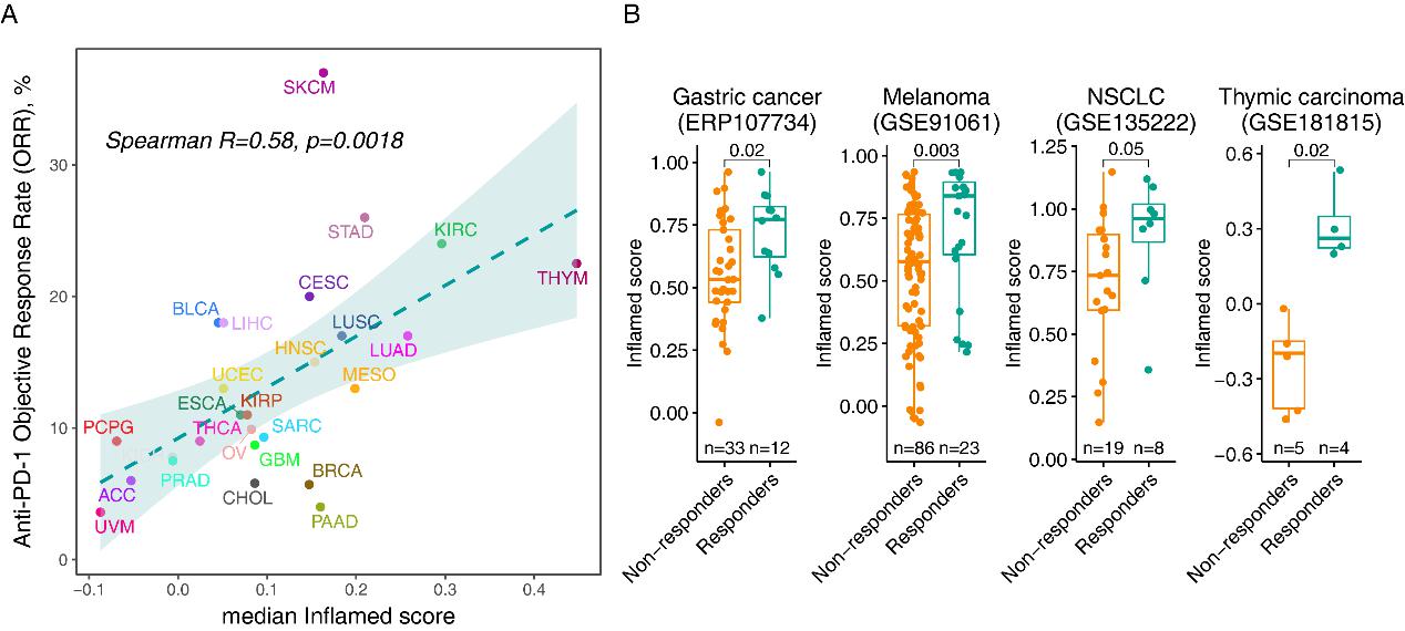在泛肿瘤中Inflamed class与PD1治疗疗效相关