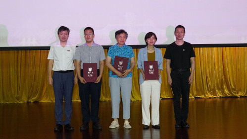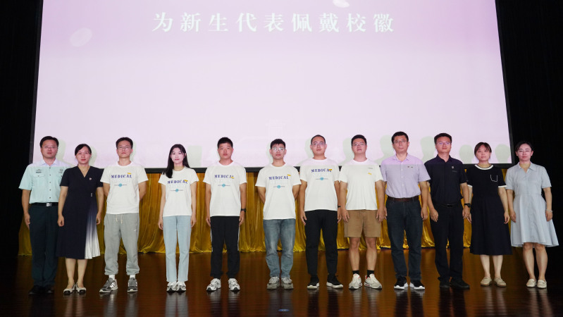 随后,与会领导和嘉宾为新生代表佩戴校徽。蒋青副院长宣读关于表彰2024年校优秀博士硕士学位论文作者及指导教师的决定。在对获奖教师和学生代表进行表彰后,2024级硕士研究生刘婉敏带领全体新生进行庄严的医学生宣誓。最后,开学典礼在集体奏唱南京大学校歌中落下帷幕。
