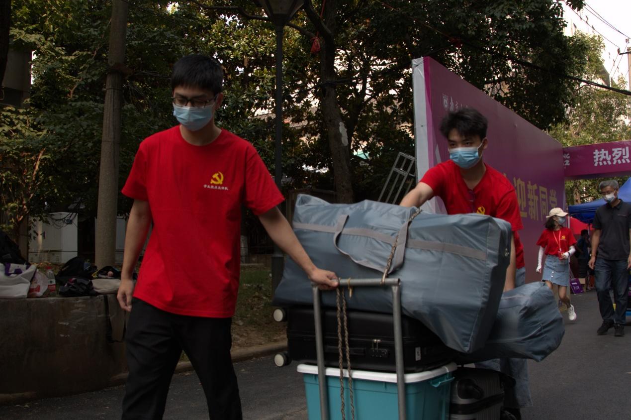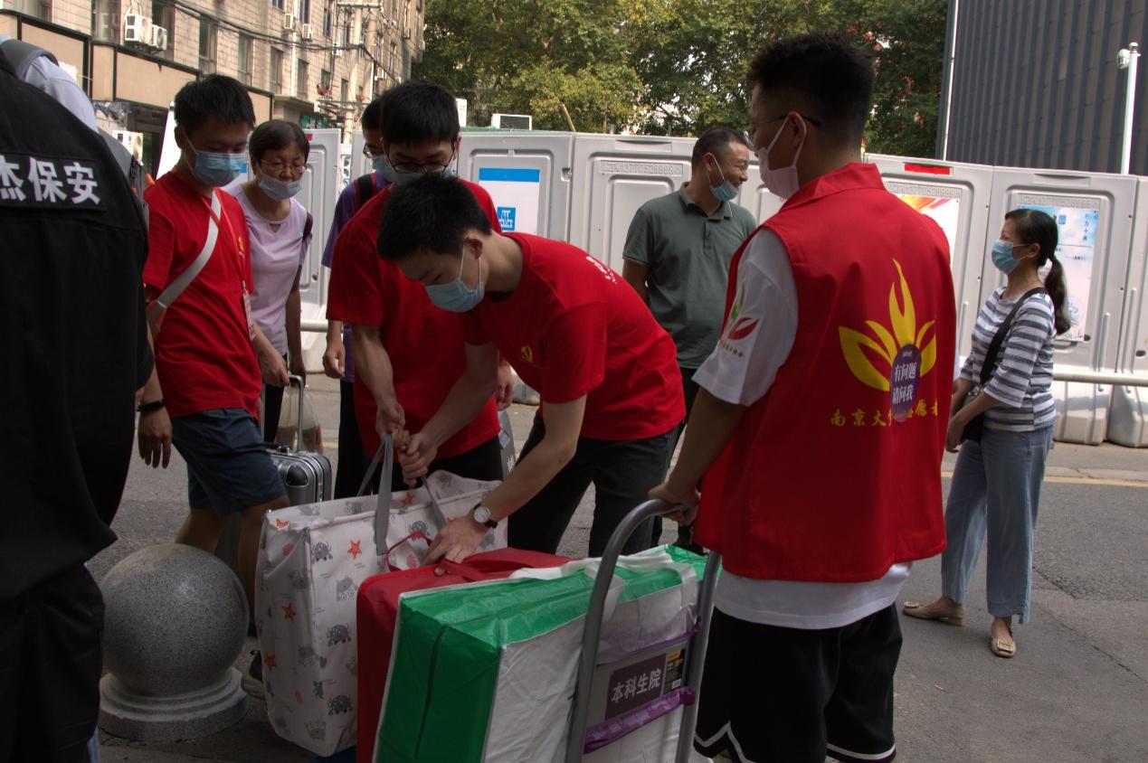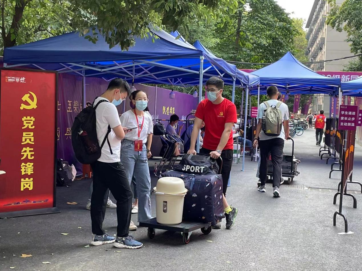 为确保疫情期间迎新工作平稳有序开展,充分发挥党员的模范带头作用,引导党员干部增强责任意识、服务意识、表率意识,不忘入党初心,南京大学在新生报到点各处设立党员先锋岗,医学院本科生党支部负责11日下午小粉桥门(延伸至珠江路地铁站)的新生引导工作,助力2022级迎新,护航新生平稳走好鼓楼校区“寻根”第一步。
