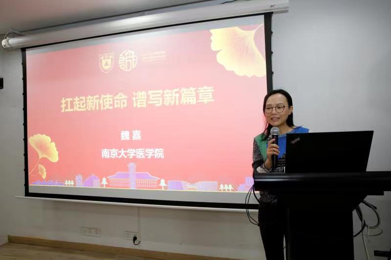 南京大学临床肿瘤研究所副所长、博士生导师、附属鼓楼医院主任医师魏嘉老师给同学们做了题为“扛起新使命 谱写新篇章”的演讲。魏嘉教授向同学们分享了她的求学、科研与工作经历,并对同学们提出几点希冀:一是爱国、创新、胸怀祖国,在攻坚克难中铸就勇攀高峰的信念;二是求实、奉献,追求真理,在潜心研究中升华淡泊名利的品质;三是协同、育人,集智攻关,在接力奋斗中凝结甘为人梯的自觉。
