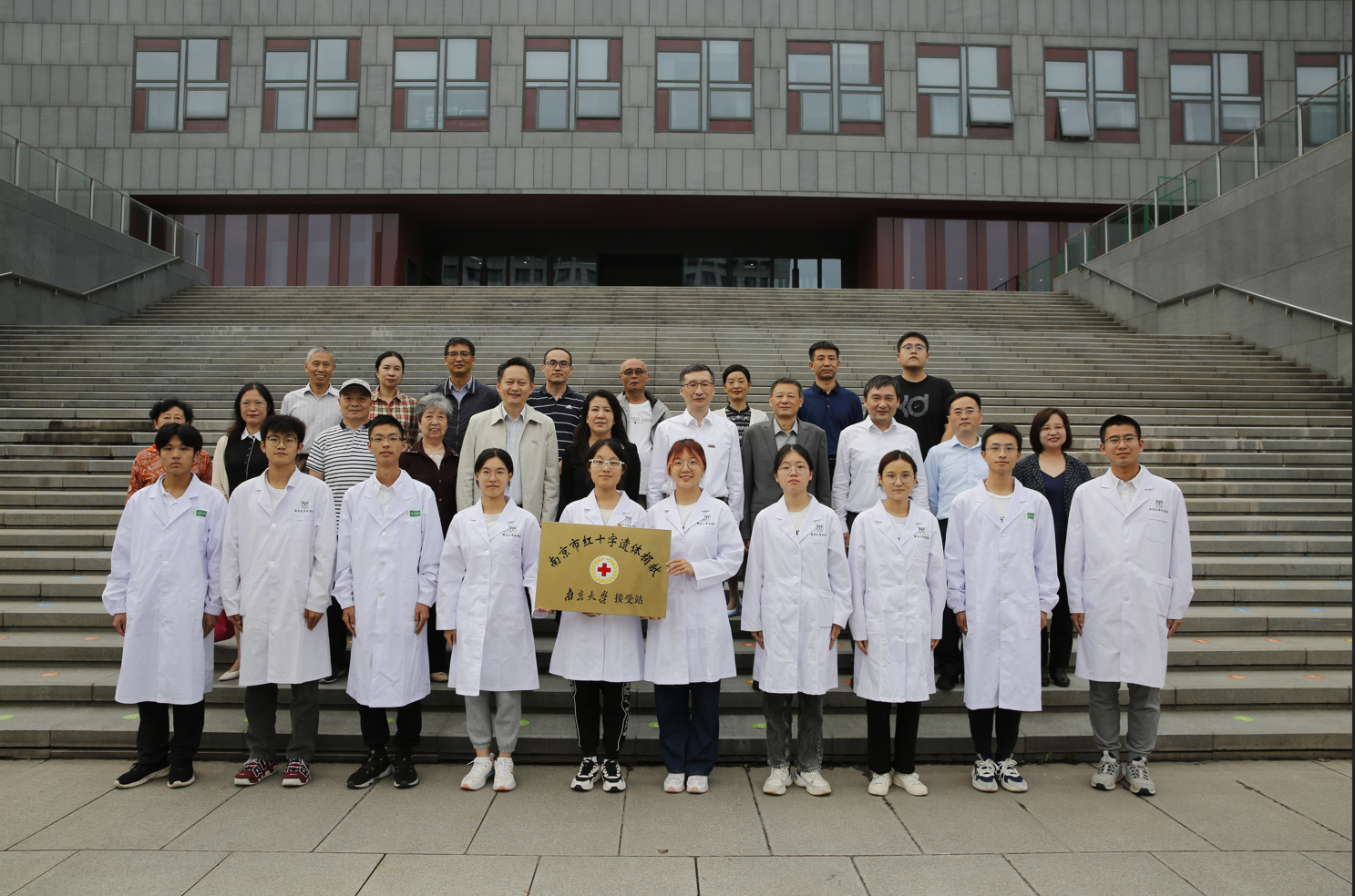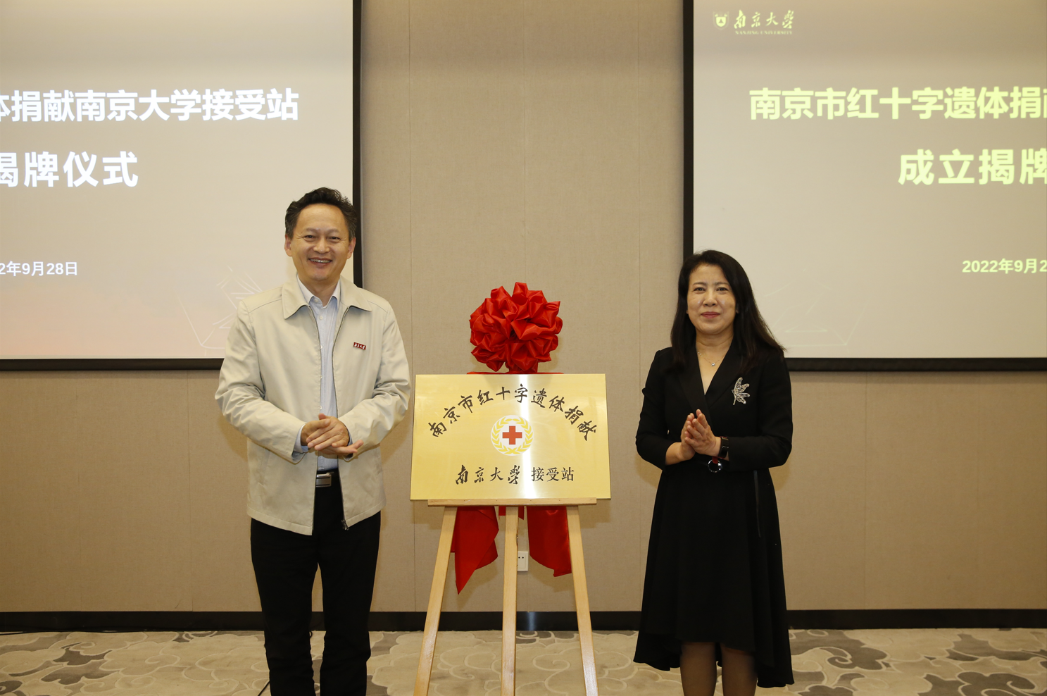 2022年9月28日下午,南京市红十字遗体捐献南京大学接受站成立揭牌仪式在仙林国际会议中心举行,市红十字会党组书记、常务副会长张敏,校党委常委、副校长邹亚军,校党委常委、副校长、医学院院长张峻峰,市红十字会党组成员、一级调研员郑海龙,栖霞区红十字会常务副会长马奎等出席仪式,南京市志友协会志愿者代表以及医学院部分师生代表参加仪式,仪式由医学院党委书记沈苏南主持。