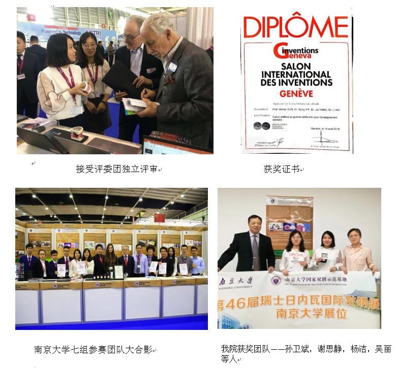 2018年4月11日至4月15日,第46届国际发明展览会在瑞士日内瓦举行。南京大学医学院口腔医学的“仿真牙龈和仿真牙石用于牙科教学和OSCE考核”教学成果获第46届瑞士日内瓦国际发明展览会教学发明银奖。南京大学作为国家双创示范基地,高度重视创新人才建设,这次共派出7个发明成果团队参加发明展,充分展示南京大学雄厚的学术基础与活跃的创新氛围。我院团队是南京大学唯一以教学发明参展的团队,所参展的项目也是国内高校唯一的口腔医学参展项目。在现场72名国际专家组成的评审团独立评判下,该项目脱颖而出,获得教学发明类最高奖银奖。